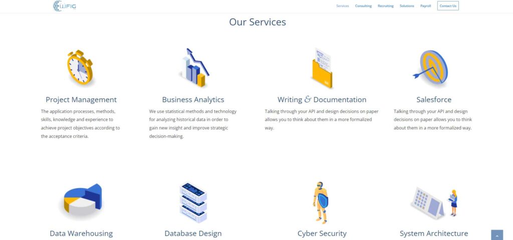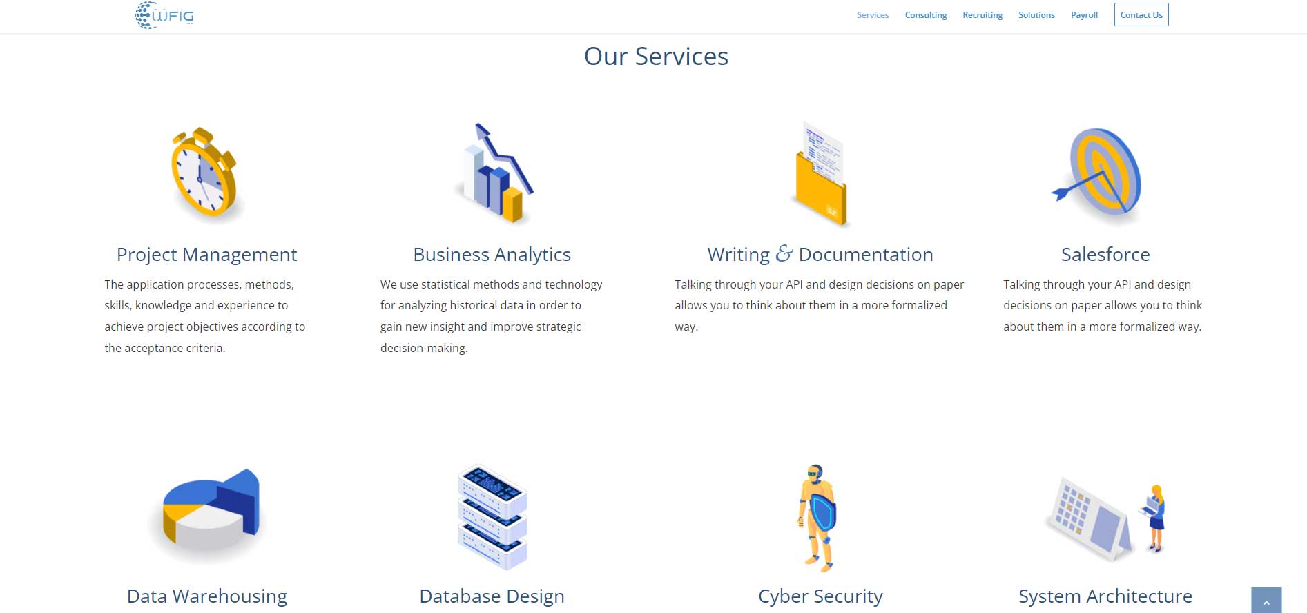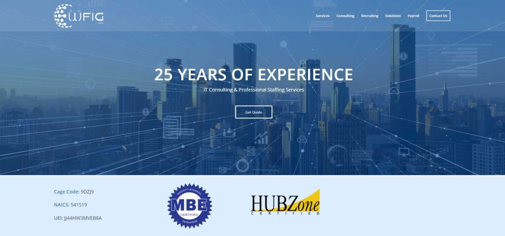 After getting certified with an MBE and HUBZone through GSE, WFIG chose to get a one-page website done through us as well. This was a great way to show there branding with services and their own information, other than what is on their capability statement.
